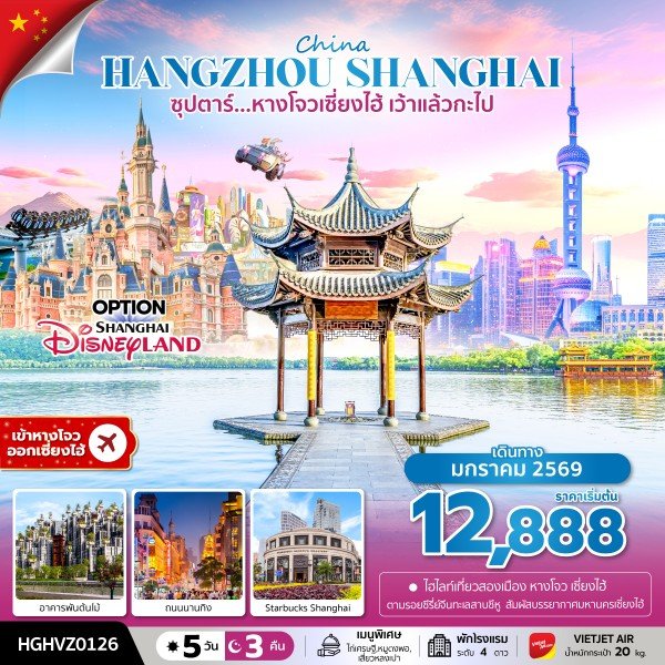 ครบสูตรทัวร์จีน เซี่ยงไฮ้ หัวโจ ซูโจ รถไฟความเร็วสูง เซี่ยงไฮ้ดีสนีย์แลนด์ ออกชัวร์ เดินทาง 100% พร้อมดูแลท่านในทุกขั้นตอน แพ็คเกจทัวร์รวมทุกอย่าง ที่พัก อาหาร ไกด์