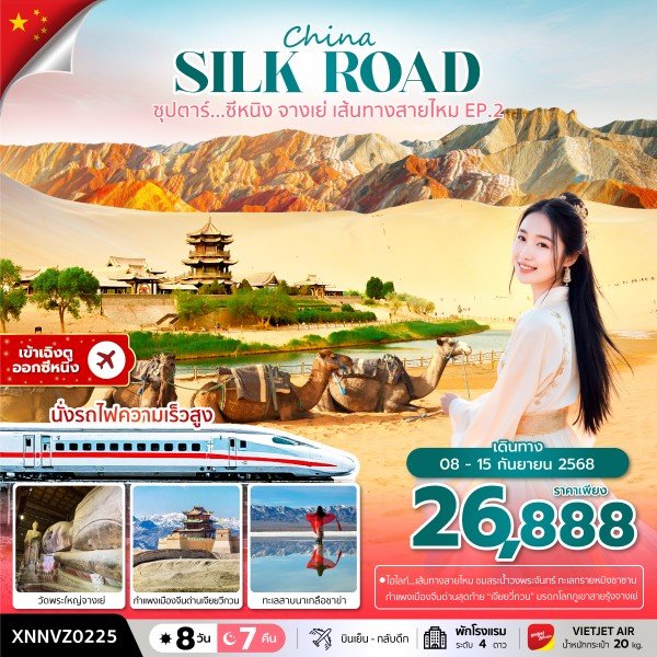 วันที่ 2: ท่าอากาศยานนานาชาติเฉิงตู เทียนฟู่ - ท่าอากาศยานนานาชาติหลันโจว จงฉวน - เมืองอู่เว่ย - เมืองจางเย่ - วัดพระใหญ่จางเย่