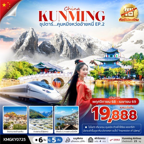 ทัวร์จีน ซุปตาร์...คุนหมิงหว่ออ้ายหนี่ EP.2 6 วัน 5 คืน,NOV 2025 - APR 2026,(ไม่ลงร้าน),บินค่ำ กลับดึก (KY)