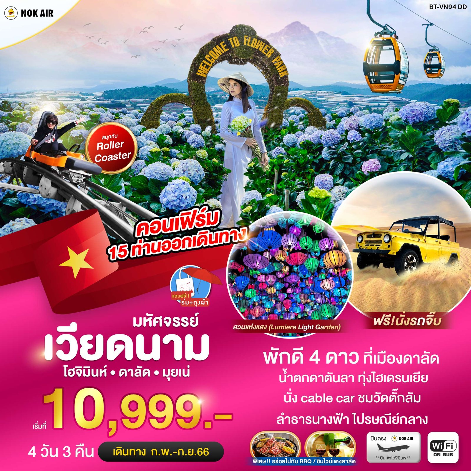 DAY 2 นั่งรถจี๊ปสู่ทะเลทรายขาว • ทะเลทรายแดง • มุยเน่ • ลำธารนางฟ้า • ดาลัด • น้ำตกดาตันลา•เช็คอินLamVienSquare•นั่งกระเช้าวัดตั๊กลัม•ตลาดไนท์บาร์ซ่า