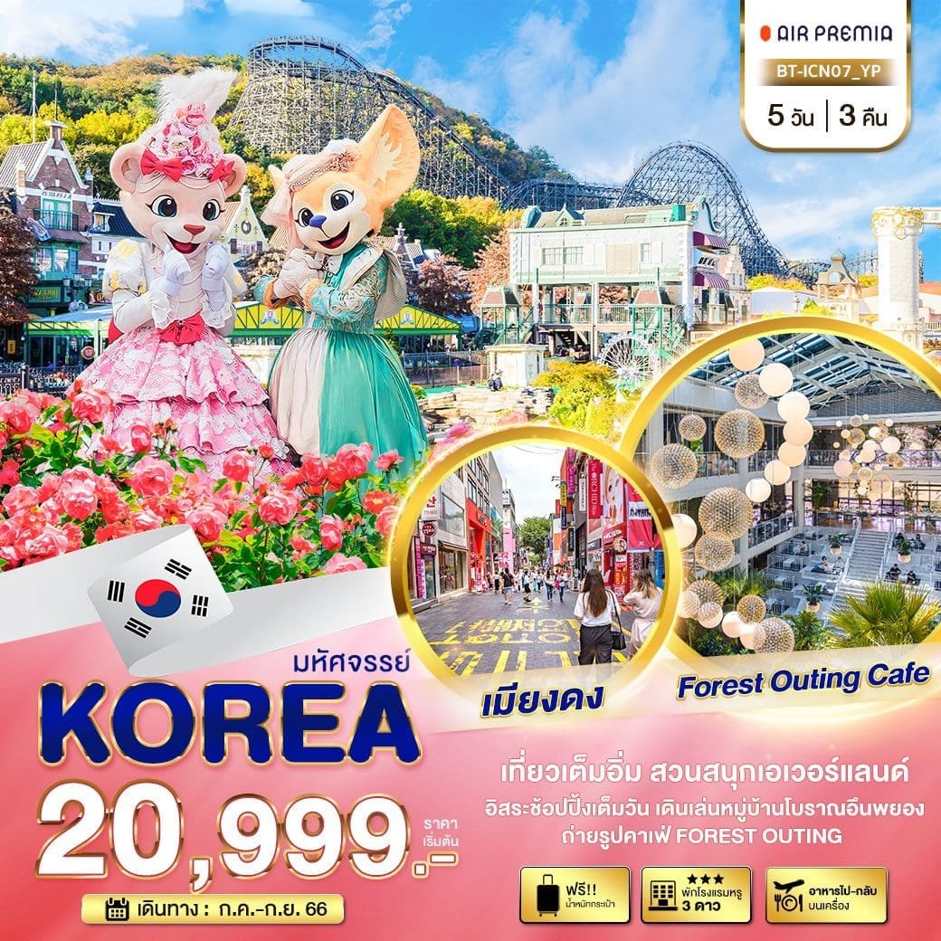 DAY 2 สนามบินอินชอน • หมู่บ้านโบราณอึนพยอง • คาเฟ่ 1 IN 1 CUP • สวนสนุกเอเวอร์แลนด์