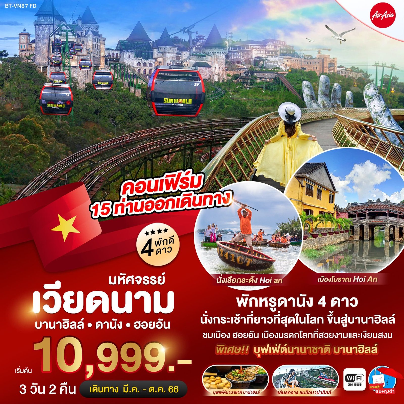 🇻🇳 ดานัง ฮอยอัน บาน่าฮิลล์ 3 วัน 2 คืน พักหรูดานัง 4 ดาว นั่งกระเช้าที่ยาวที่สุดในโลก ขึ้นสู่บานาฮิลล์ ชมเมืองฮอยอัน เมืองมรดกโลกทีสวยงามเเละเงียบสงบ พิเศษ !! บุฟเฟต์นานาชาติ บานาฮิลล์