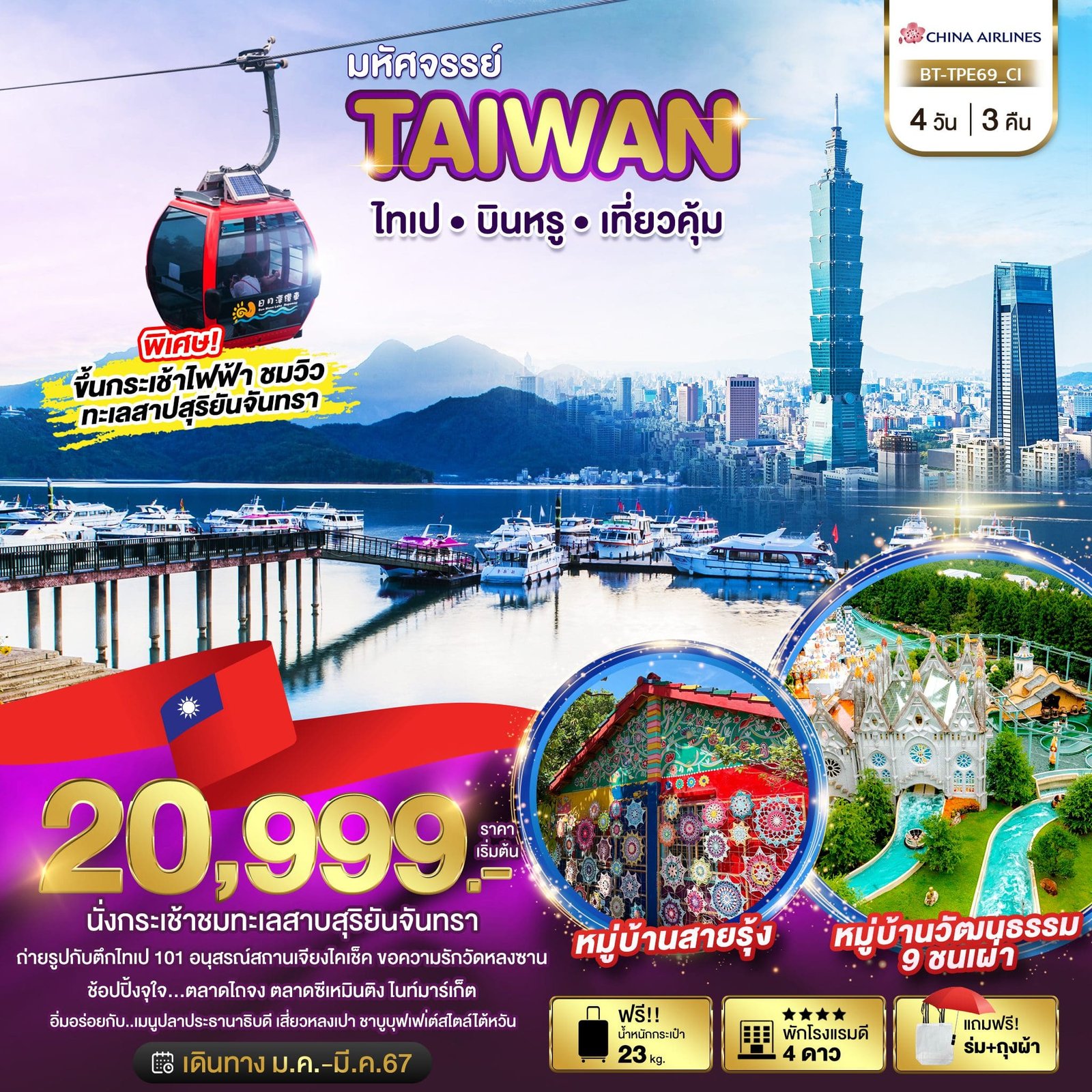 DAY 2 เมืองหนานโถว●นั่งกระเช้าสู่หมู่บ้าน9ชนเผ่า●ล่องเรือทะเลสาบสุรยันจันทรา●วัดเห