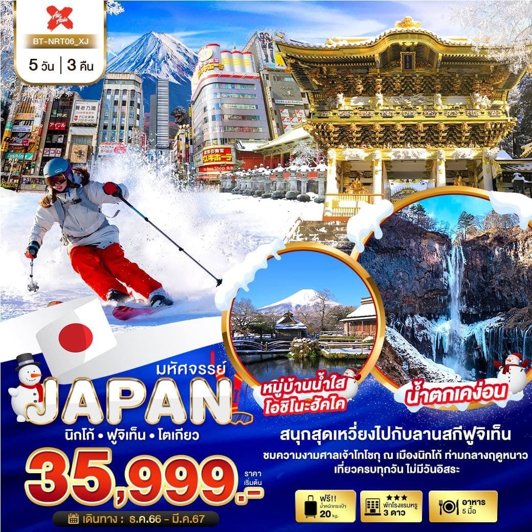 เที่ยวครบทุกวัน ไม่มีวันอิสระ !! สนุกสุดเหวี่ยง ลานสกีฟูจิเท็น เช็คอินหมู่บ้านน้ำใสโอชิโนะฮัคไค ชมความงามศาลเจ้าโทโชกุ ณ เมืองนิกโก้ ท่ามกลางฤดูหนาว สุดอลังกับน้ำตกเคง่อน